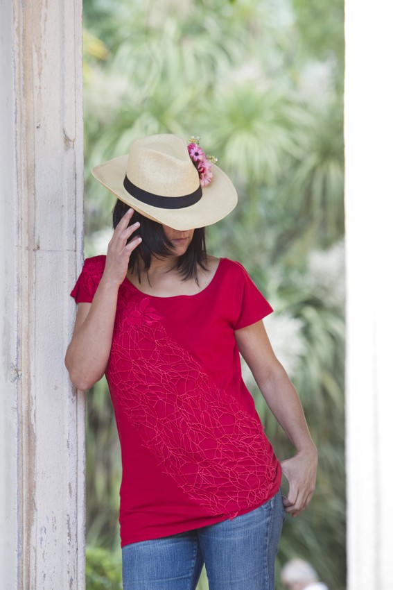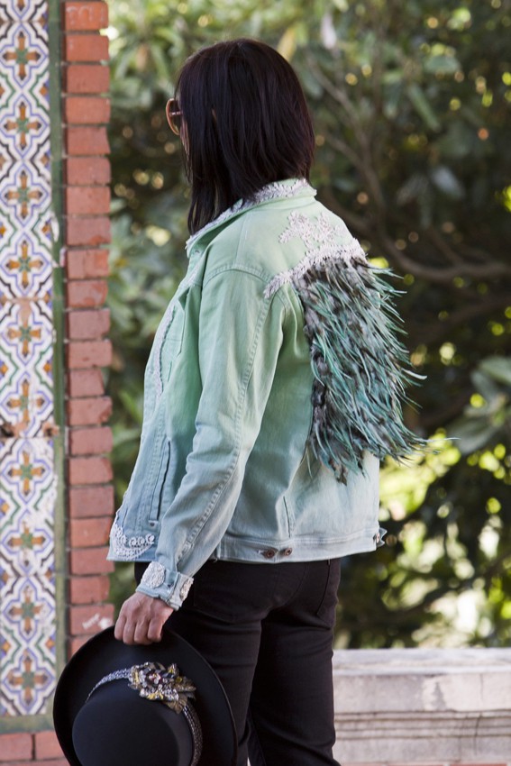 Almudena Aguirre trabaja el Upcycling o supraciclaje, recolectando tejidos de alta costura residuales antes de llegar a ser desechados. De su mano, recupera, manipula y tiñe artesanalmente junto con pasamanerías y bordados Vintage para crear nuevas piezas únicas y exclusivas. Creando arte para vestir con la ilusión de atender una economía circular y compra ecológica.